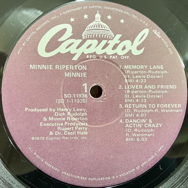 ・米オリジナル。歌詞記載内袋。 Memory Lane収録、シンガー、ミニー・リパートン、79年ソウル/メロウ作品。