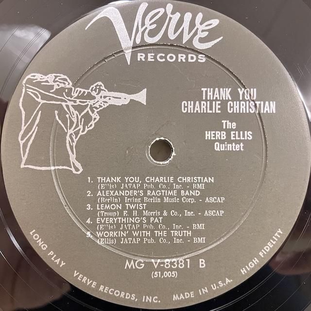 ・Us Verve Mgv8381 ・米オリジナル、Vinc Dg/Tp、Mono カバーに軽い角スレ、b面極部分的に軽いチリパチ微底チリ聞かれる箇所あります、a面に音に出ない薄いスレ少々、a4音に出ないプレスミス小。ジャズ・ギター奏者、ハーブ・エリス の60年発表チャーリー・クリスチャンに捧げた作品。