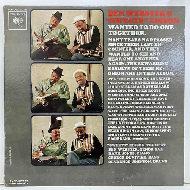 ・米オリジナル・プロモ、2eye Mono。良品。ベン・ウェブスターとハリー・エディソン、62年作品。"試聴/Audio Sample"