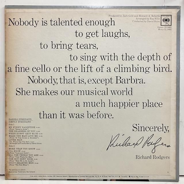 ・米オリジナル、2eye白矢Stereo。カバーに薄いスレ。バーブラ・ストライサンド、67年作品。"試聴/Audio Sample"