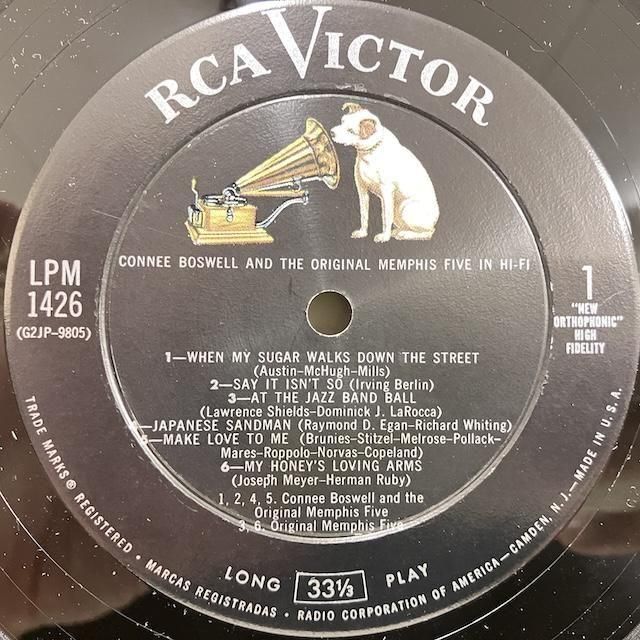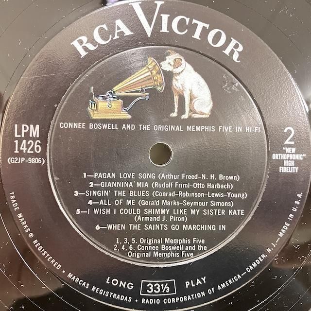 ・米オリジナル、Dg Mono。Rca社内袋。カバーに軽い割れ少々。ボズウェル・シスターズのコニー・ボスウェルとオリジナル・メンフィス・ファイブ、57年デキシー・スゥイング作品。"試聴/Audio Sample"