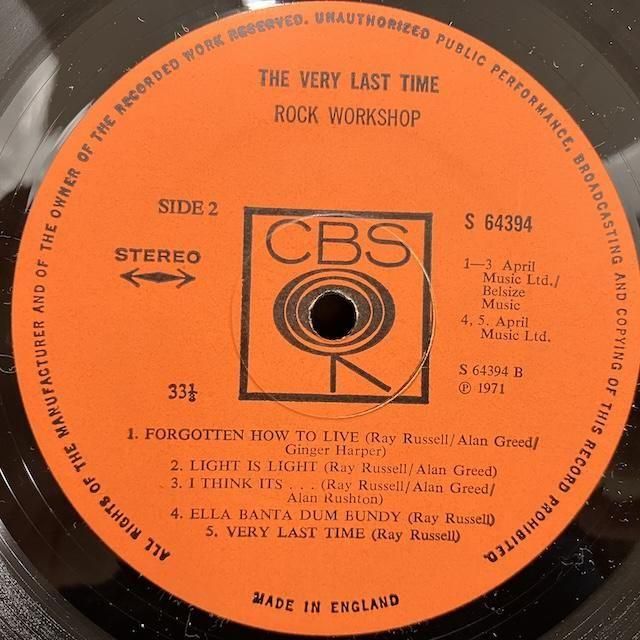 ・英オリジナル、見開きカバー天に糊の剥離、シワ少々見られます。マトA1B1、Cbs社内袋に日焼け、テープ。レイ・ラッセル のロック・グループ、ロック・ワークショップ の71年発表ジャズロック/ジャズファンク作品。