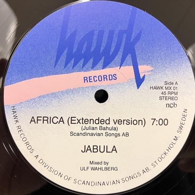 ・スウエーデン・オリジナル、レーベル面書き込み。2曲入り12インチ。南アフリカのグループ、ジャブラ の85年発表UKガラージと相性の良さそうなアフリカン・ディスコ作品。