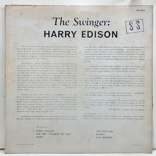 ・米オリジナル、黒銀Vinc/Tp Dg Mono。カバーにスタンプ小。ジャズ・トランぺット奏者、ハリー・エディソン、58年発表作品。ジミー・フォレスト、ジミー・ジョーンズ、フレディ・グリーン等参加です。