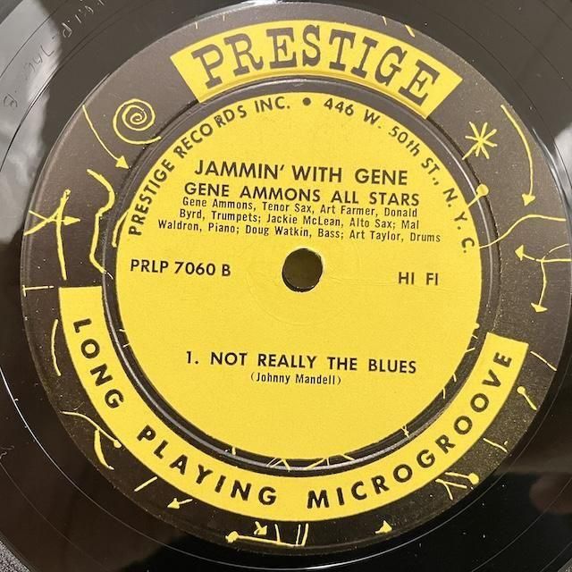 ・米オリジナル、Nycレーベル、Dg Rvg手書き刻印、Mono。447アドレス・コーティング・カバーに背抜け6cm程。A1薄い傷の一部で小さく数回音に出る程度、他音に出ない薄いスレ少々。テナー、ジーン・アモンズ、58年録音作品。ジャッキー・マクリーン、アート・ファーマー、デューク・ジョーダン等参加です。
