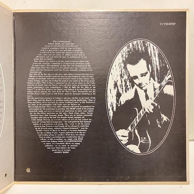 ・米オリジナル、Dg Mgm Stereo。見開きカバーに軽い黄ばみ、パンチ。ヴァーブ社内袋。盤面良好ですが、b2ラストに軽いノイズ一瞬聞かれます、他は良好。ギター、ジョニー・スミスの67年作品。ハンク・ジョーンズ、 ジョージ・デュヴィヴィエ、ドン・ラモンド 編成。 "試聴/Audio Sample"