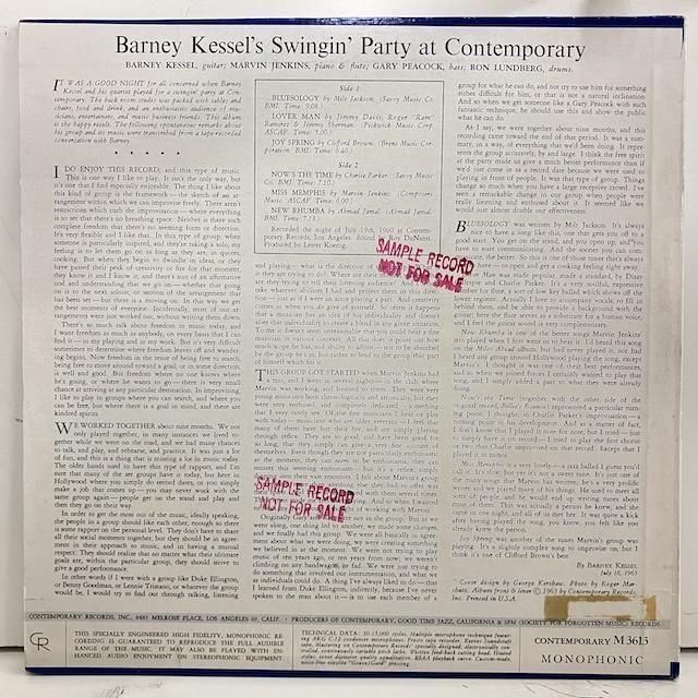 ・米オリジナル、艶プロモ Dg Mono D1D1。カバーにスタンプ、テープ小。 ジャズ・ギター奏者、バーニー・ケッセル の63年発表作品。マーヴィン・ジェンキンス、ゲイリー・ピーコック 等参加です。