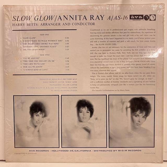 ・米オリジナル、Dg Mono。シュリンク付きカバー。盤面a2a3b3に大きく・ない薄い砂傷、他は良好。ジャズ・シンガー、アニタ・レイ の62年発表作品。ハリー・ベッツ 等参加です。