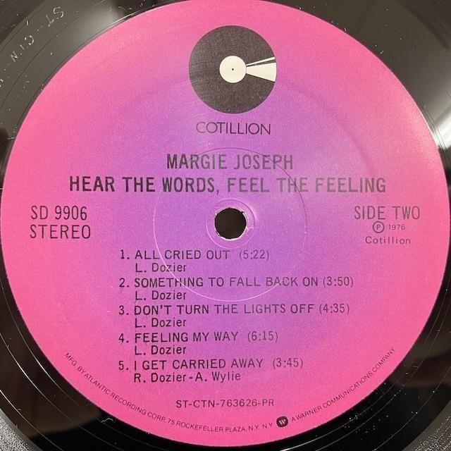 ・米オリジナル、Prc刻印。シュリンク付きカバーにカット。アトランティック社内袋に抜け。ソウル・シンガー、マージー・ジョセフ 76年発表 ラモン・ドジャー 製作、ミディアム・メロウ/レディソウル作品。ジェイムス・ギャドソン、エド・グリーン、オリー・ブラウン、スコット・エドワーズ、ヘンリー・デイヴィス、リー・リトナー、レイ・パーカーJr.、ディーン・パークス、ジェリー・ピータース、ジョン・バーンズ参加。