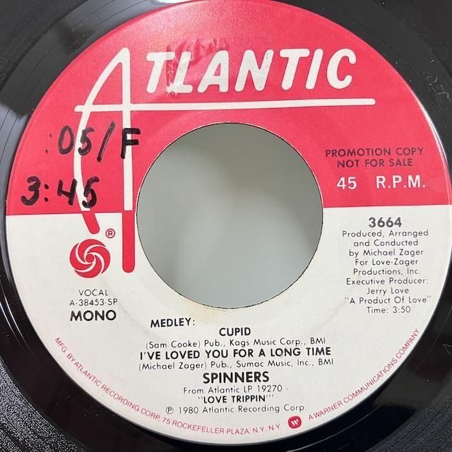 ・米盤、プロモ2曲入り7インチ。Cw-モノラル。レーベル面書き込み。デトロイトのソウル・グループ、スピナーズ、80年発表サム・クックをカバーしたディスコ作品。"試聴/Audio Sample"