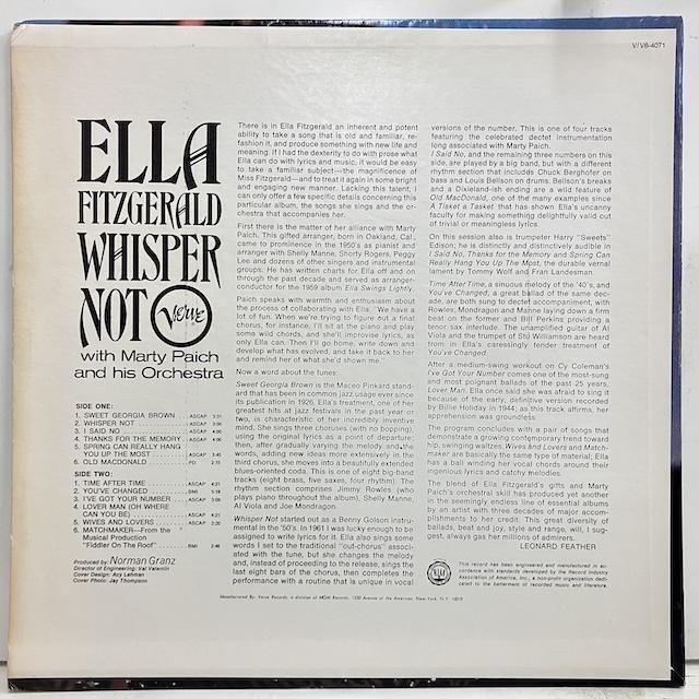 ・米オリジナル・プロモ。溝無プロモ・レーベルMono。シンガー奏者、エラ・フィッツジェラルド、66年発表作品。マーティ・ペイチ 等参加。 "試聴/Audio Sample"