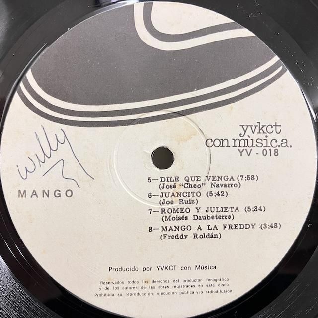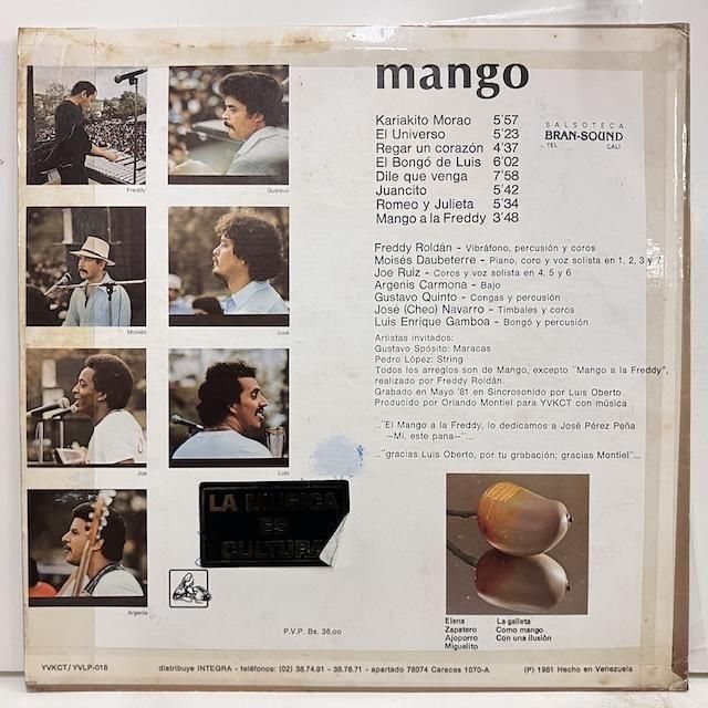 ・ヴェネズエラ・オリジナル、カバー全角透明テープ、盤面音に出ない薄いスレ少々。レーベル面書き込み。Dile Que Venga収録、ベネズエラのグループ・マンゴ の81年発表 デスカルガ/ラテンジャズ 作品。"試聴/Audio Sample"