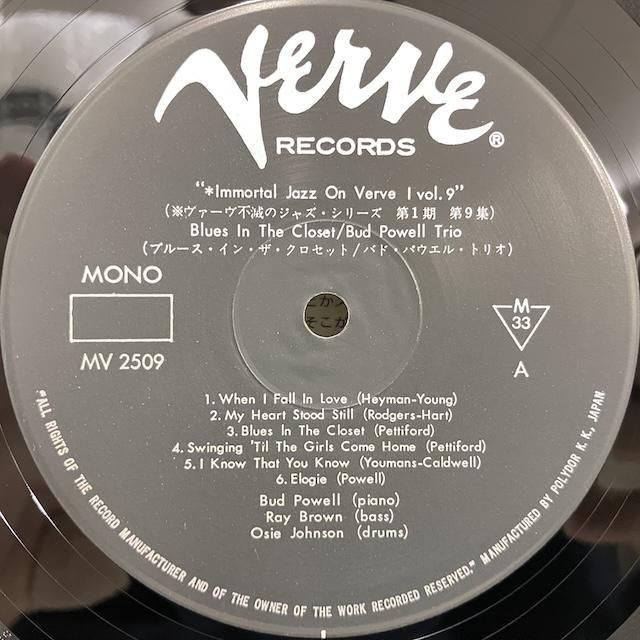 ・日本盤、74年プレス、Mono。帯ライナー完品。ピアノ、バド・パウエル、56年発表ピアノトリオ作品。