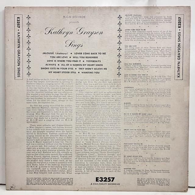 ・米オリジナル、Dg Mono。カバーに底割れ小、ステッカー小。盤面傷スレ無しですが軽い底チリ聞かれます。シンガー、キャスリン・グレイソン、55年作品。