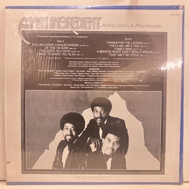 ・米オリジナル。シュリンク付きカバーにカット。セオ・パリッシュ プレイRolling Down A Mountainside収録、ソウル・グループ、メイン・イングレディエント の75年発表ソウル/メロウ作品。