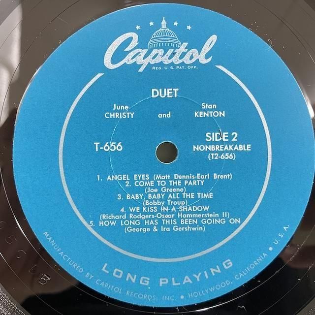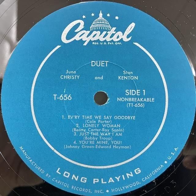・米オリジナル、ターコイズMono。カバーに底割れ小、背割れ小。ジャズ・シンガー、ジューン・クリスティ の55年発表作品。スタン・ケントン 等参加です。本人サイン紙付き。