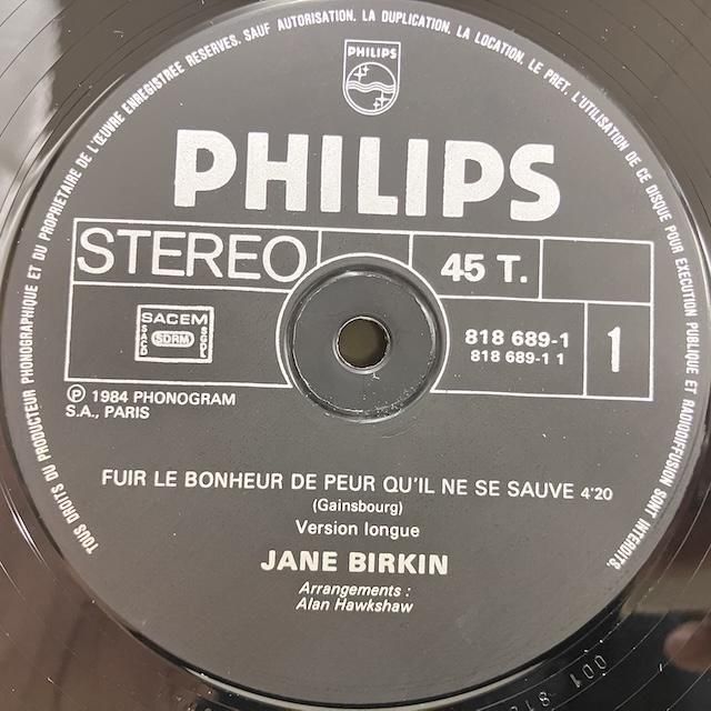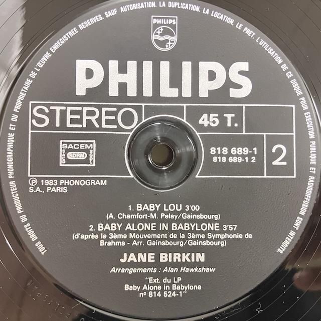 ・仏オリジナル、3曲入り12インチ。Cw- Baby Alone In Babylone、Baby Lou。ジェーン・バーキン、84年アーバン・メロウ作品。
