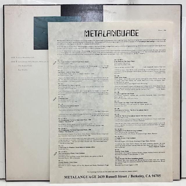 ・米オリジナル、レーベル・カタログ記載インサート。ギター奏者、ヘンリー・カイザー の84年発表フリーインプロ作品。"試聴/Audio Sample"
