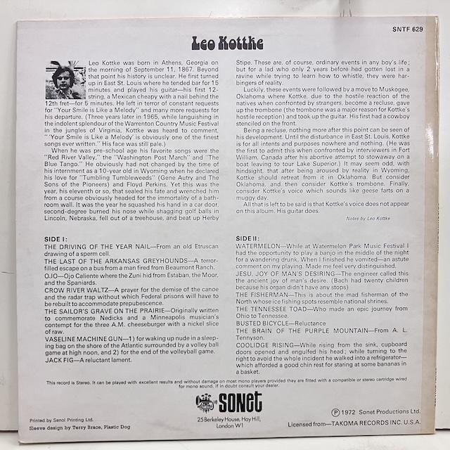 ・英オリジナル、72年盤。パテント内袋。米Takoma C1024 と同内容。ギター奏者、レオ・コッケ の69年発表フィンガーピッキング/アメリカーナ作品。"試聴/Audio Sample"