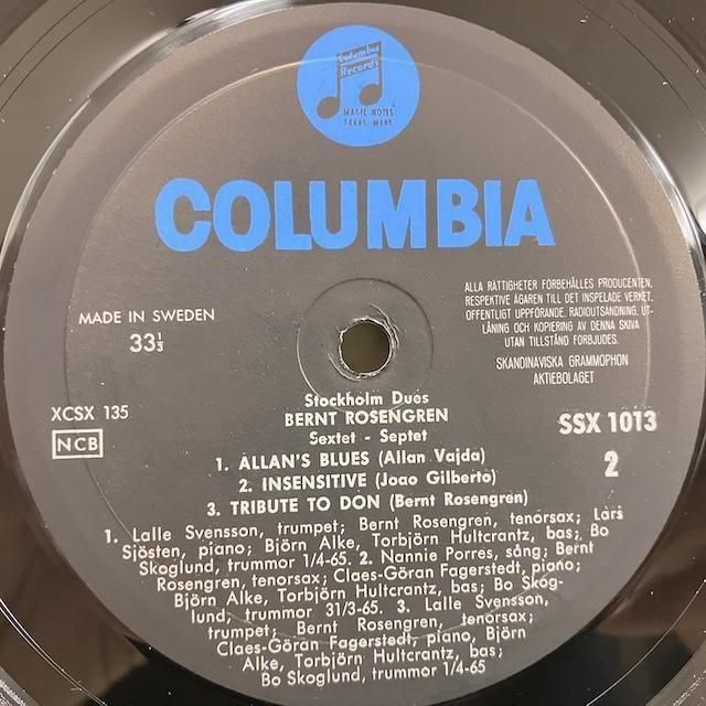 ・スウェーデン・オリジナル。コーティング・カバー。テナー、ベルント・ローゼングレン、65年作品。
