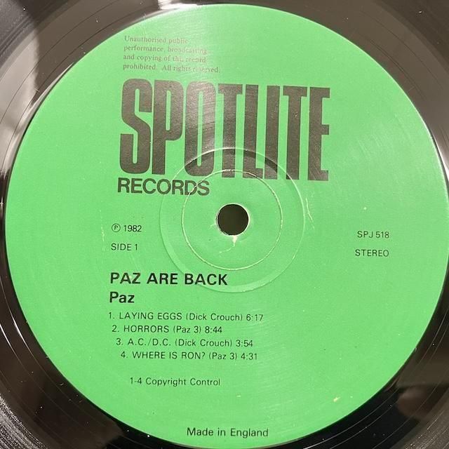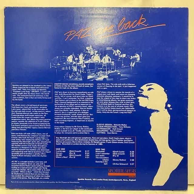 ・英オリジナル。カバーに軽い角スレ、ステッカー痕小。Laying Eggs収録、パズ、82年発表ジャズロック/ジャズファンク作品。