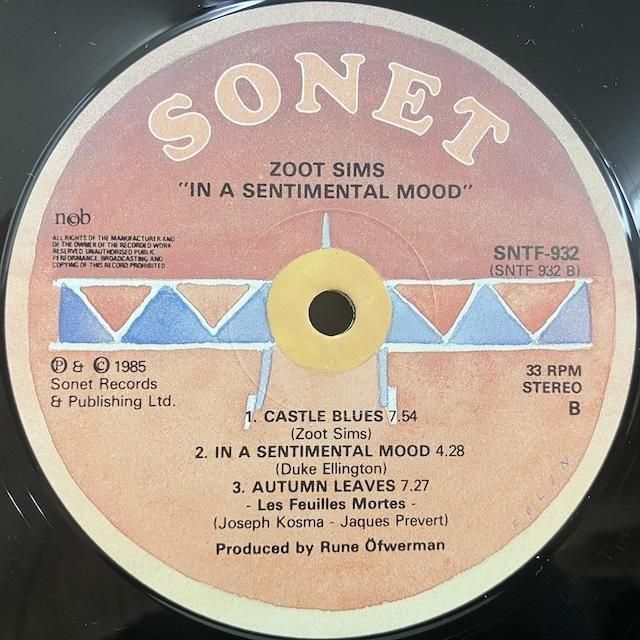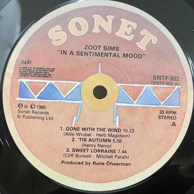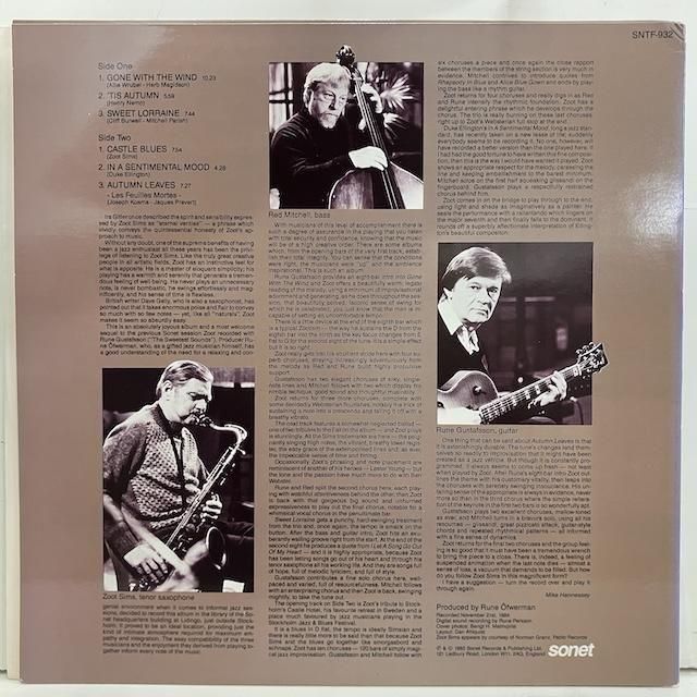 ・英オリジナル。ソネット社内袋。ジャズ・テナー奏者、ズート・シムズ の85年発表作品。ルーン・グスタフソン、レッド・ミッチェル 等参加です。