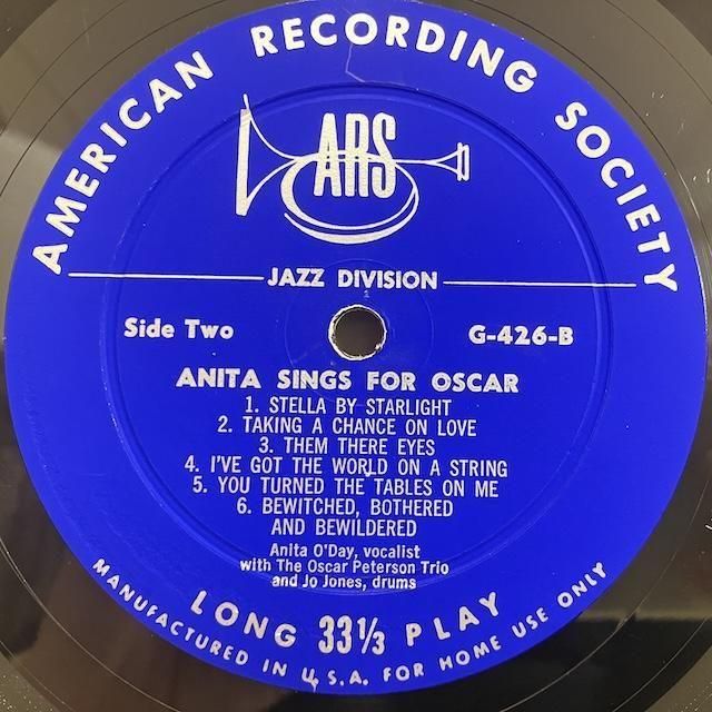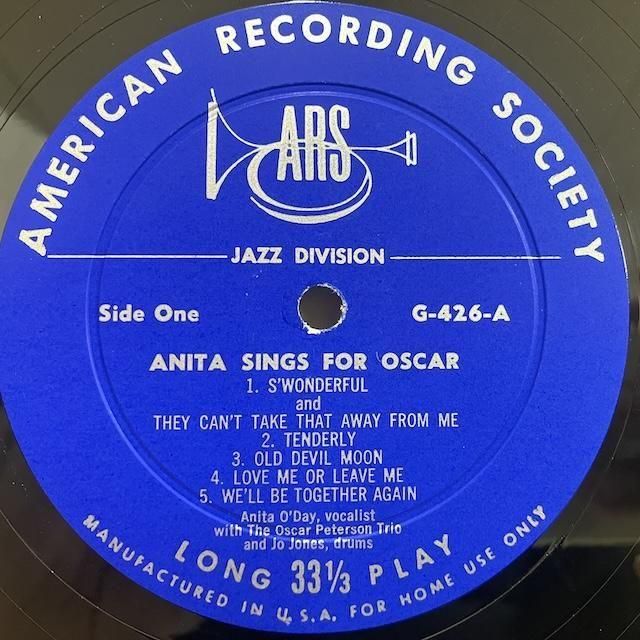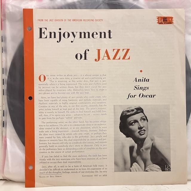 ・米盤、MGV-8259/Anita Sings The MostのArs盤、Dg Mono、Rvg刻印。 Ars社ライナー、ナイロン袋付き。シンガー、アニタ・オデイとオスカー・ピーターソン・カルテット、57年作品。