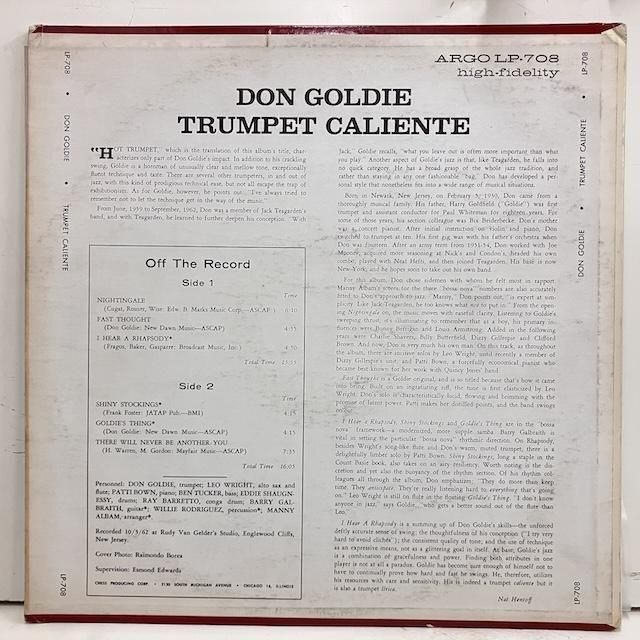・米オリジナル、Dg Mono。ジャズ・トランペット奏者、ドン・ゴールディ の63年発表作品。バリー・ガルブレイス 等参加です。