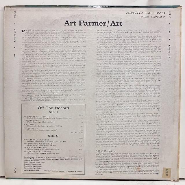 ・米オリジナル、グレイDg Mono。コーティング・カバー。盤面音に殆ど出ない薄いスレ薄い傷少々。ジャズ・Tp奏者、アート・ファーマー の60年発表作品。トミー・フラナガン・トリオ 参加、ワン ホーン 傑作です。"試聴/Audio Sample"