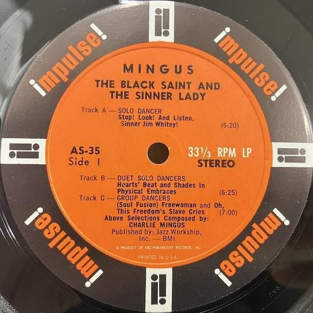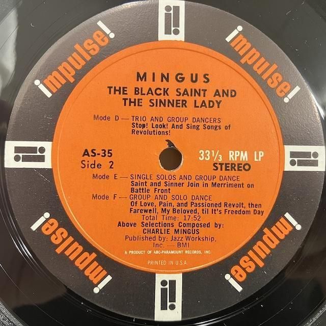 ・米オリジナル、Abc-Paramount艶4logoオレンジ、Stereo「LW Rvg」機械刻印。 見開きコーティング・カバーにステッカー小、背に軽い日焼け、入れ口部裏面2mm程度の剥がれ小。盤面音に出ない薄いスレ少々。ジャズ・ベース奏者、チャールズ・ミンガス の63年発表ビッグバンドジャズ作品。ロルフ・エリクソン、リチャード・ウィリアムス、クェンティン・ジャクソン、ドン・バターフィールド、ジェローム・リチャードソン、チャーリー・マリアーノ、ディック・ヘイファー、ジャッキー・バイアード、ジェイ・バーリナー、ダニー・リッチモンド等参加。"試聴/Audio Sample"