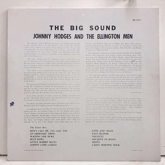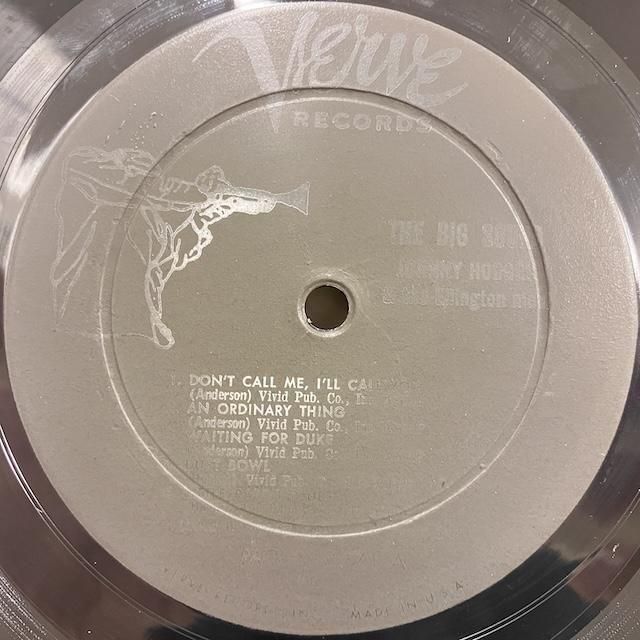 ・米オリジナル、Dg Mono Vinc黒銀Tp、盤面プレス起因による軽度のチリパチ散見、スナキズ小による気にならない程度のチリパチ数回程度。レーベル面インク薄くなってます。ジャズ・アルト奏者、ジョニー・ホッジス、57年発表作品。クラーク・テリー、レイ・ナンス、ウィリー・クック、キャット・アンダーソン、ハロルド・ベイカー、クェンティン・ジャクソン、ジョン・サンダース、ブリット・ウッドマン、、ラッセル・プロコープ、ジミー・ハミルトン、ハリー・カーネイ、ビリー・ストレイホン、ジミー・ウディ、サム・ウッドヤード等参加。