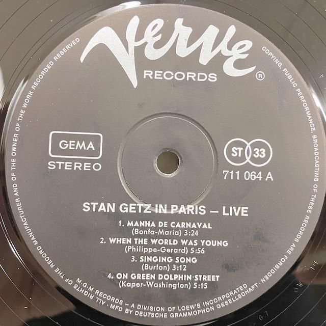 ・独オリジナル、Stereo。コーティングカバー。ジャズ・テナー奏者、スタン・ゲッツ の67年発表、フランス録音作品。ゲイリー・バートン、スティーヴ・スワロウ、ロイ・ヘインズ 等参加です。"試聴/Audio Sample"