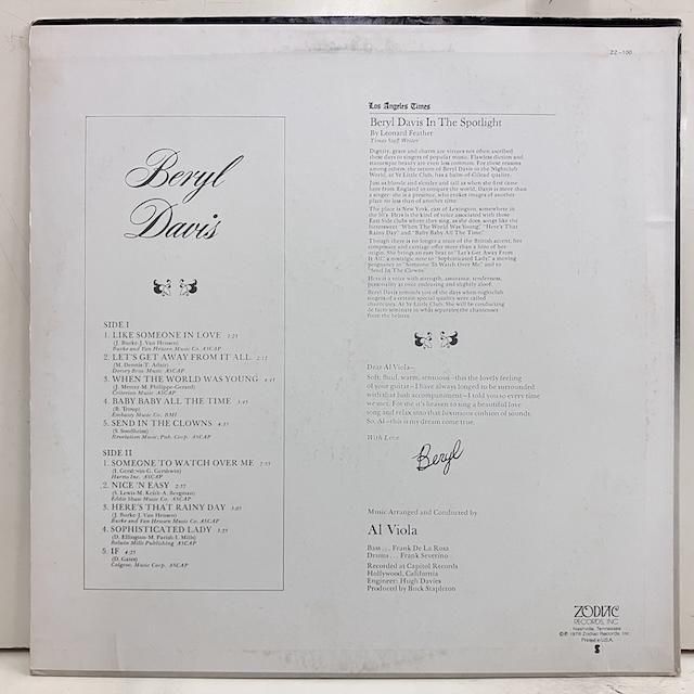 ・米オリジナル。カバーに軽いスレ。ベテランシンガー、ベリル・デイヴィス、76年、アル・ヴィオラのアレンジによるスモールコンボでのローカルレーベルからの復帰作品。