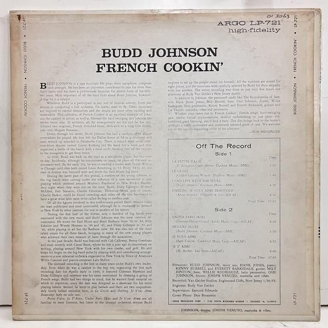 ・米オリジナル、プロモ Dg Mono。カバーにスレ少々、書き込み少々。ジャズ・テナー奏者、バド・ジョンソン の63年発表作品。ハンク・ジョーンズ、ケニー・バレル、ジョセフ・ヴェヌート 等参加です。
