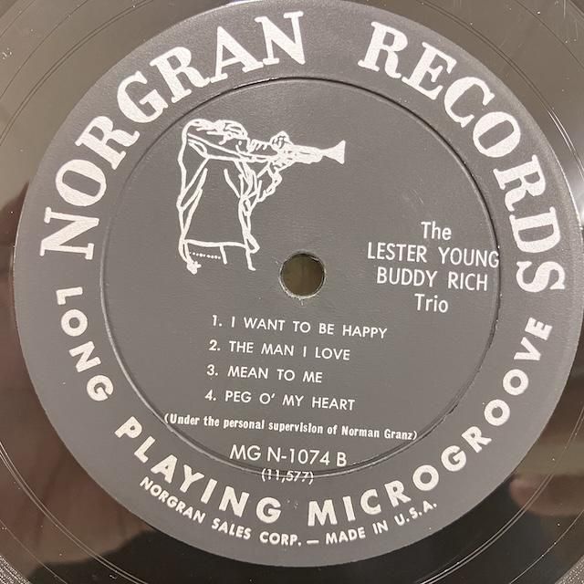 ・米オリジナル、Norgramn/黒銀Tp Dg。カバーに目立たない剥がれ小。レスター・ヤング、ナット・キング・コール、バディ・リッチ、58年録音作品。