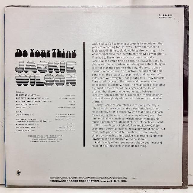 ・米オリジナル、カバーに角スレ、画鋲痕、ドリルホール、 ブランズウィック社内袋に書き込み小、ドリルホール。ソウル・シンガー、ジャッキー・ウィルソン の68年発表 This Guy's In Love With You 収録、カール・デイヴィスとユージン・レコード制作、ノーザン/シカゴソウル作品。                  "試聴/Audio Sample"